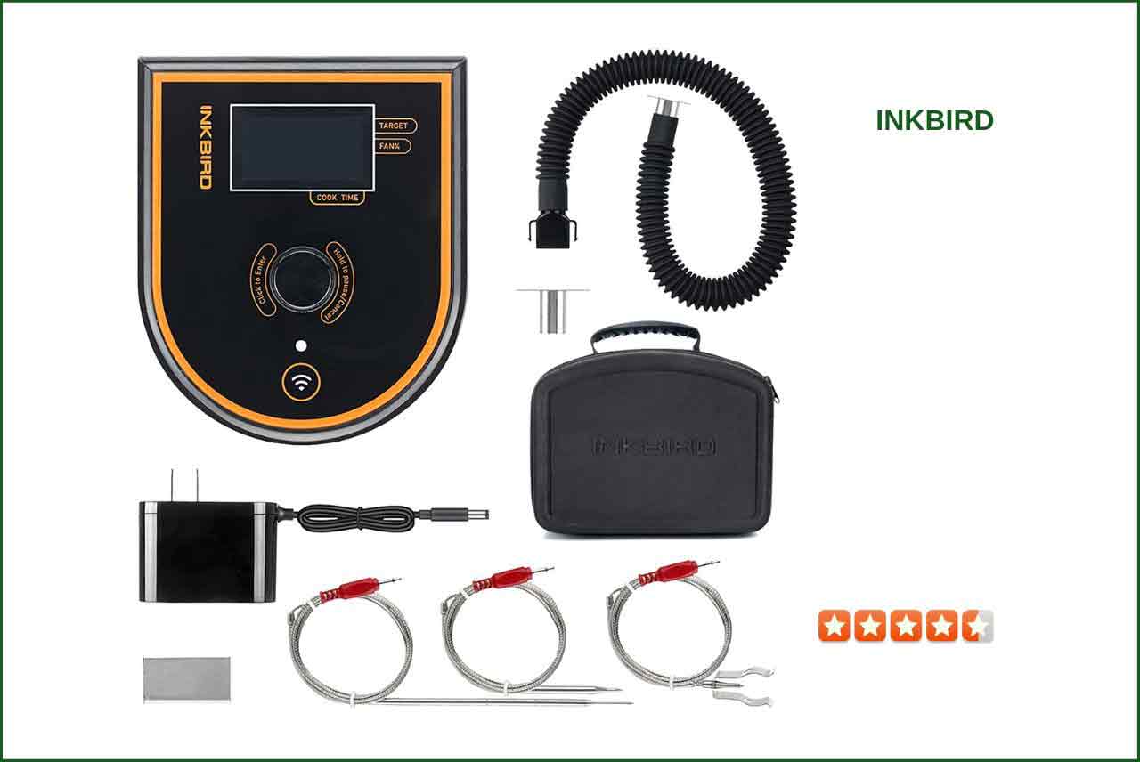 The Inkbird BBQ temperature controller is an excellent choice for those who want to avoid hassle and enjoy simple smoking and grilling experience. Luckily, this kit has fantastic tools, including an adapter, a pit probe, a blast pipe, and two meat probes housed in a safe hard case.